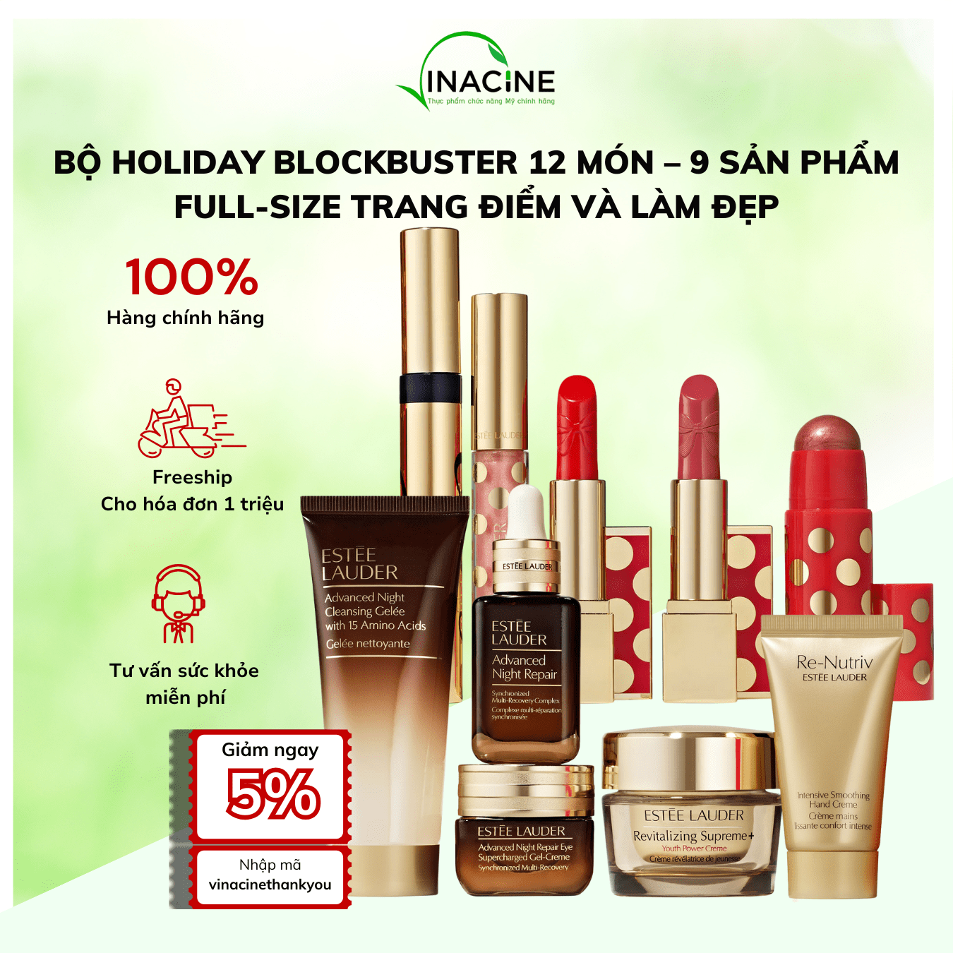 Thương Hiệu: Estee LauderBộ Làm Đẹp Estee Lauder Holiday Blockbuster 12 Món – 9 Sản Phẩm Full Size Hot Nhất 2025