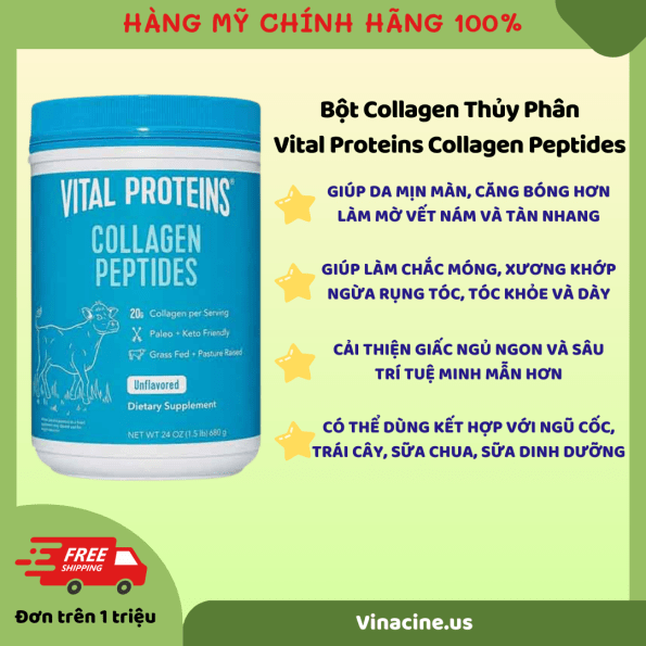 Bột Collagen Vital Proteins Collagen Peptides Unflavored – Sản Phẩm Bổ Sung Hàm Lượng Collagen Tối Ưu.