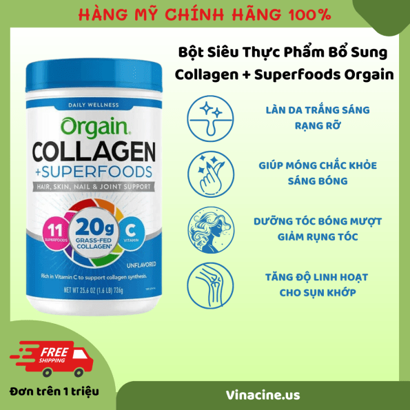 Bột Siêu Thực Phẩm Orgain Collagen + Superfoods 726g