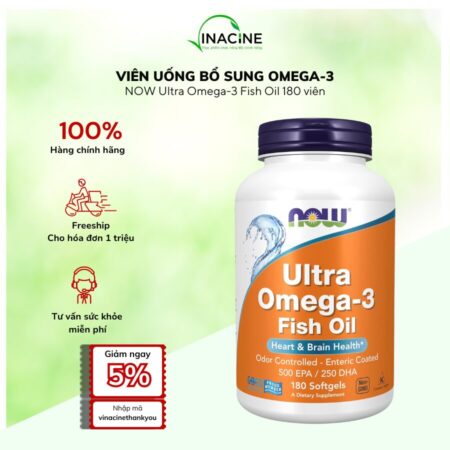 Thương Hiệu: NowViên Uống Omega-3 Hỗ Trợ Tim Mạch NOW Omega-3 Fish Oil 180 EPA / 120 DHA 1000 mg 500 Viên