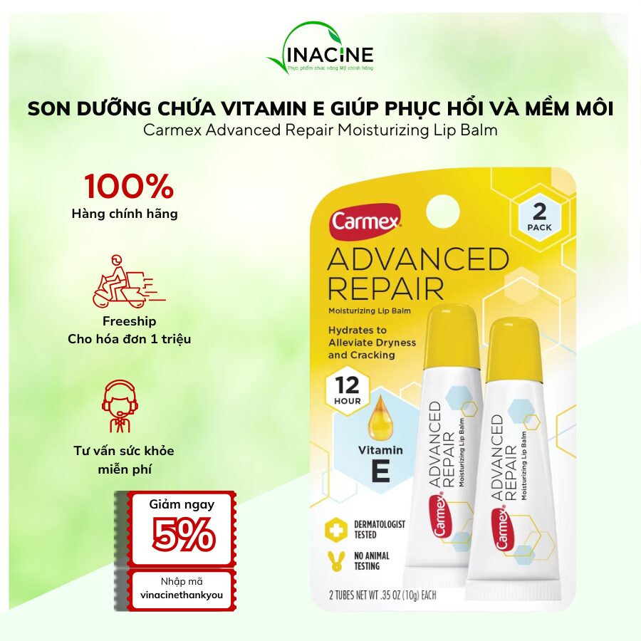 Son Dưỡng Chứa Vitamin E Giúp Phục Hồi Và Mềm Môi Carmex Advanced Repair Moisturizing Lip Balm là lựa chọn phù hợp cho những ai đang tìm kiếm một sản phẩm dưỡng môi chuyên sâu, giúp cải thiện tình trạng môi khô nứt và duy trì đôi môi mềm mại, khỏe mạnh mỗi ngày.