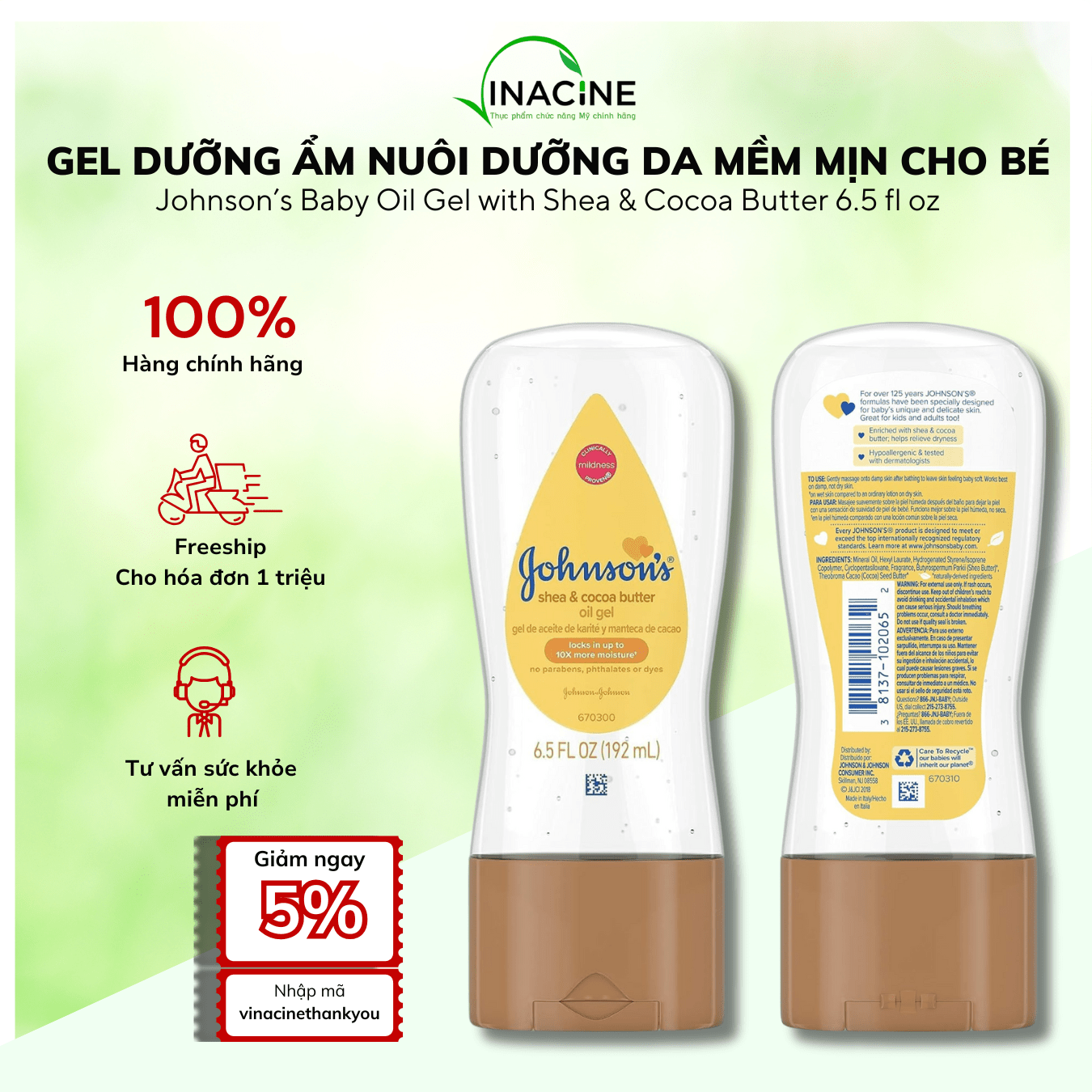 Dầu Gel dưỡng ẩm & massage, nuôi dưỡng da mềm mịn Johnson’s Baby Oil Gel with Shea & Cocoa Butter 192ml