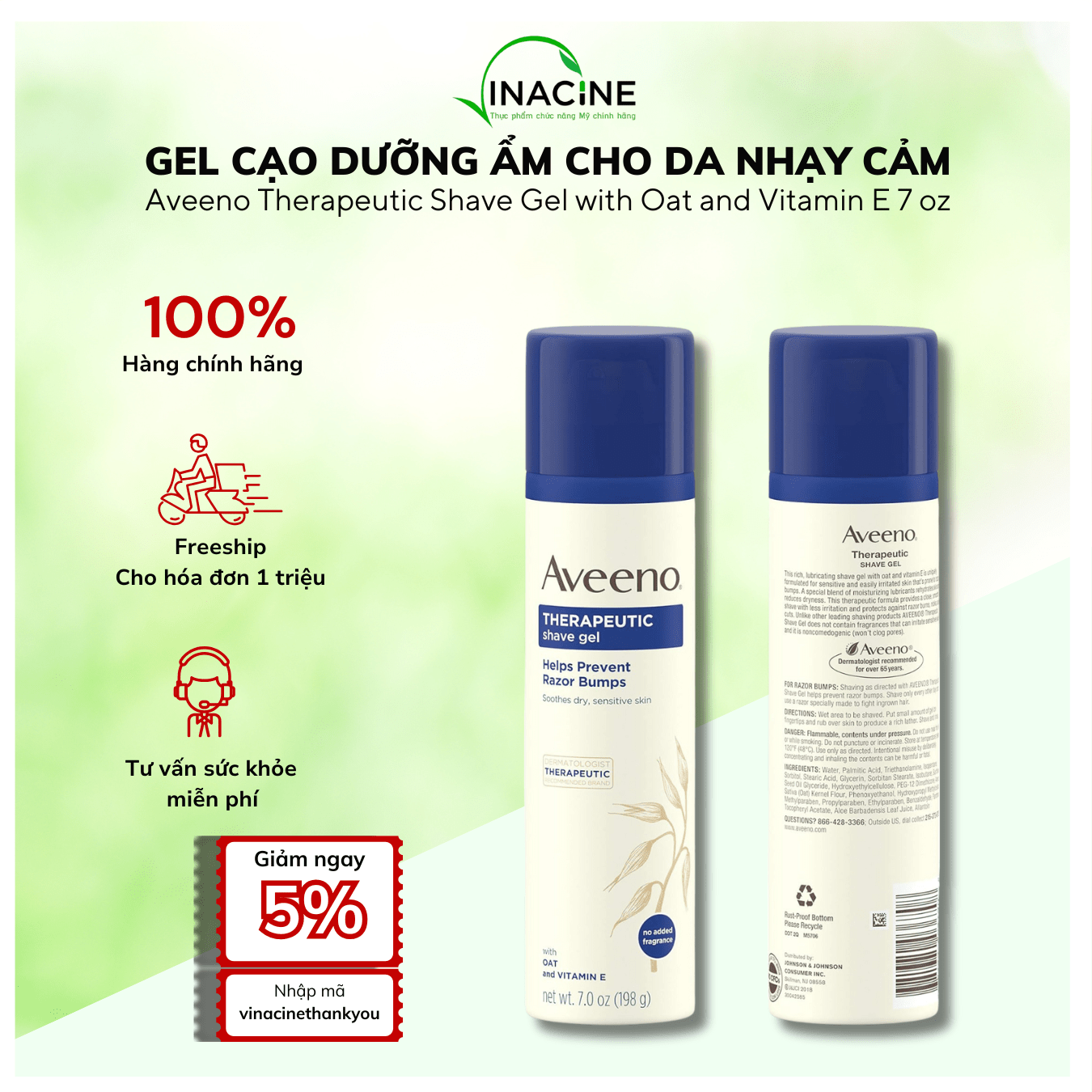 Aveeno Therapeutic Shave Gel with Oat and Vitamin E là gel cạo râu chăm sóc da chuyên biệt dành cho da khô và nhạy cảm, giúp ngăn ngừa kích ứng, mẩn đỏ và vết rát sau khi cạo. Công thức độc quyền chứa bột yến mạch keo (Colloidal Oatmeal) và vitamin E giúp làm dịu, dưỡng ẩm và bảo vệ da trong quá trình cạo, mang lại cảm giác mềm mịn và dễ chịu.