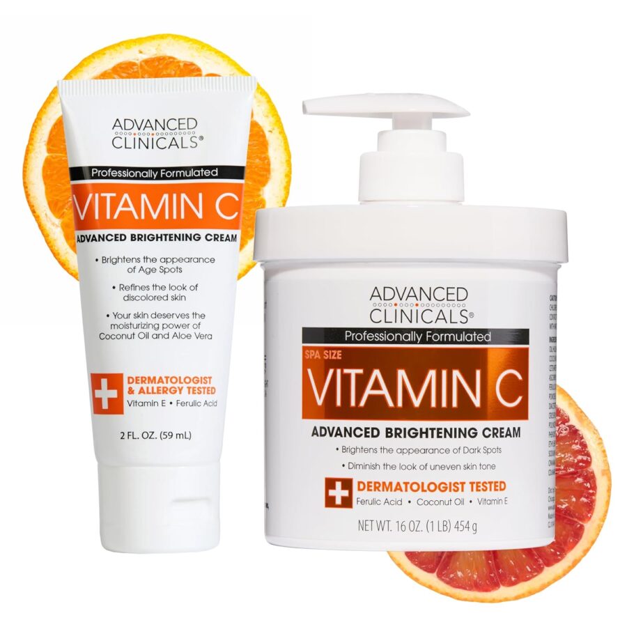 Đánh thức làn da rạng rỡ và tràn đầy sức sống với Advanced Clinicals Vitamin C Brightening Cream. Được mệnh danh là giải pháp ‘thần kỳ’ cho những làn da xỉn màu, thâm sạm, sản phẩm kết hợp sức mạnh của Vitamin C đậm đặc cùng các dưỡng chất thực vật giúp nuôi dưỡng làn da trắng sáng, mịn màng và đẩy lùi các dấu hiệu lão hóa hiệu quả. Với kích thước 59ml nhỏ gọn, đây là người bạn đồng hành lý tưởng để bạn chăm sóc da mọi lúc, mọi nơi.