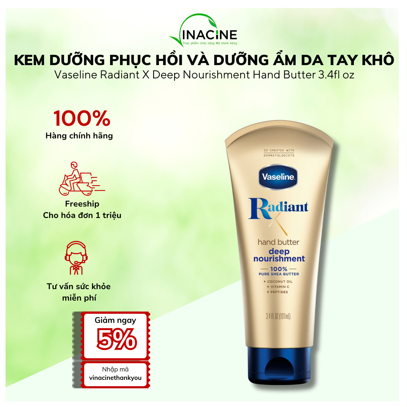 Kem Dưỡng Tay Chuyên Sâu, Phục Hồi Và Dưỡng Ẩm Da Tay Khô Vaseline Radiant X Deep Nourishment Hand Butter 101ml