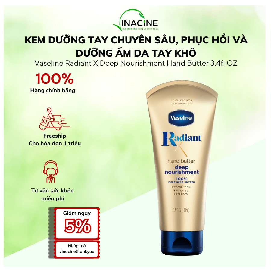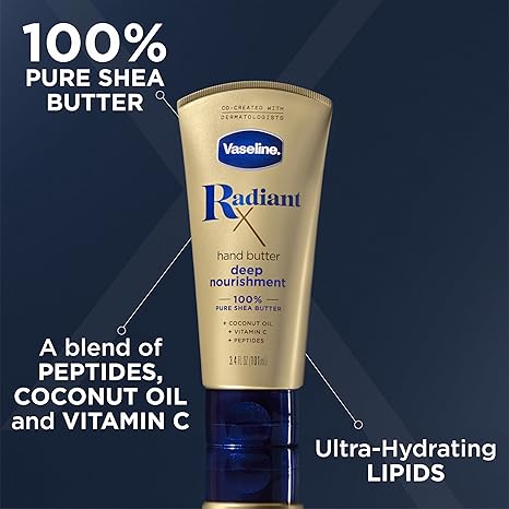 Kem Dưỡng Tay Chuyên Sâu, Phục Hồi Và Dưỡng Ẩm Da Tay Khô Vaseline Radiant X Deep Nourishment Hand Butter 3.4fl OZ