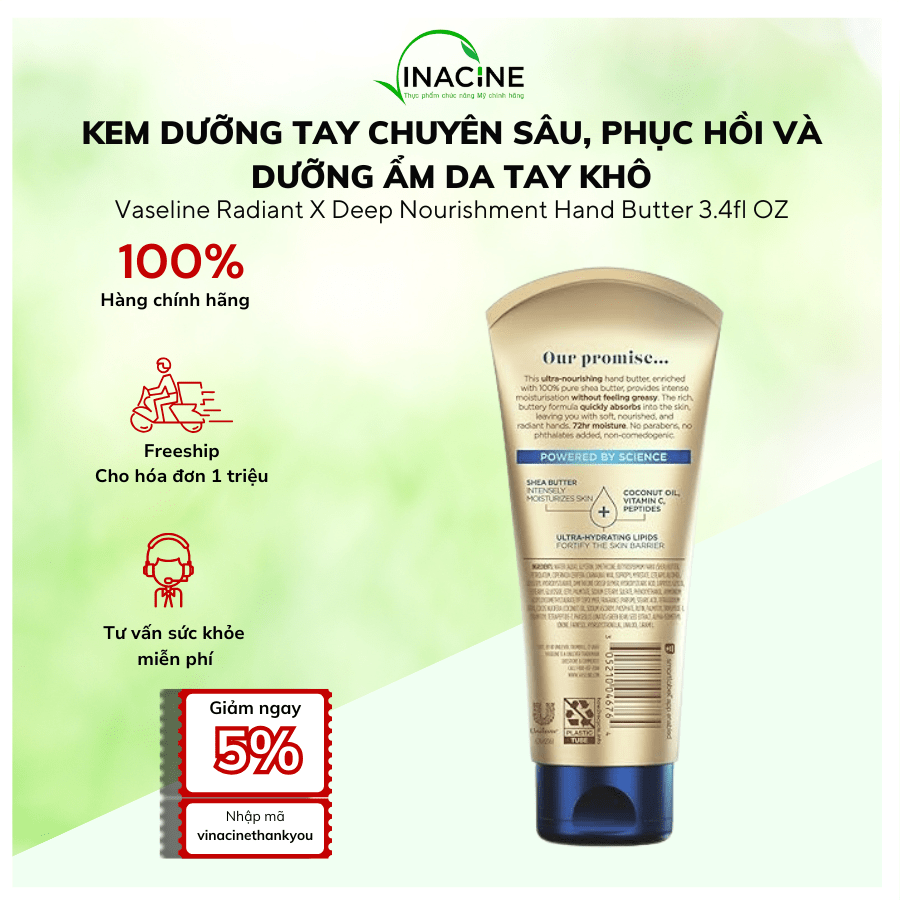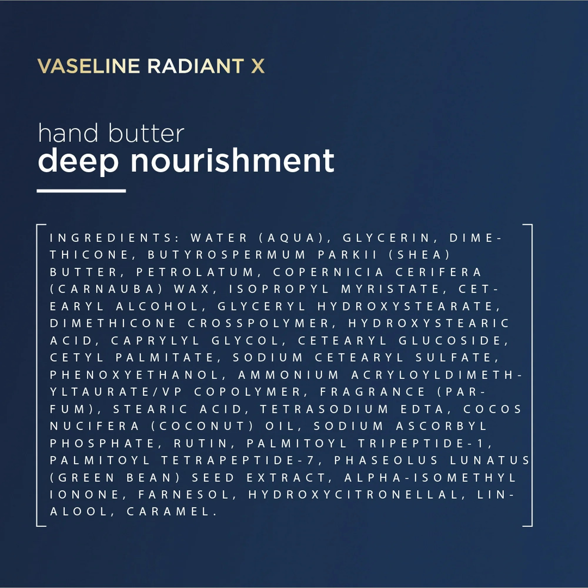 ToggleVaseline Radiant X Deep Nourishment Hand Butter – Kem dưỡng tay chuyên sâu, phục hồi và dưỡng ẩm da tay khô, mềm mịn và sáng khỏe