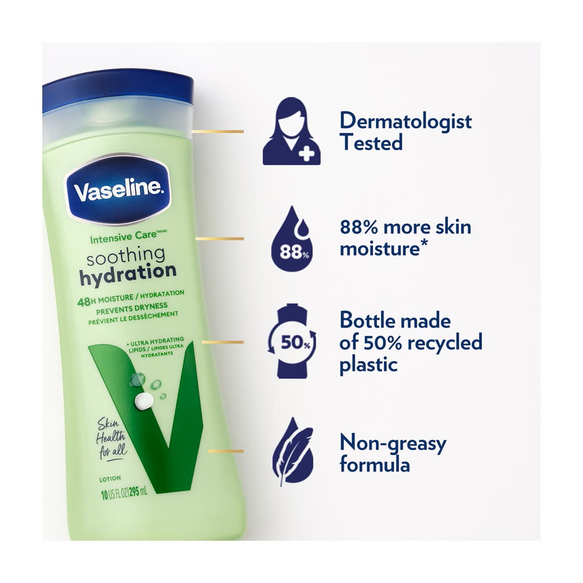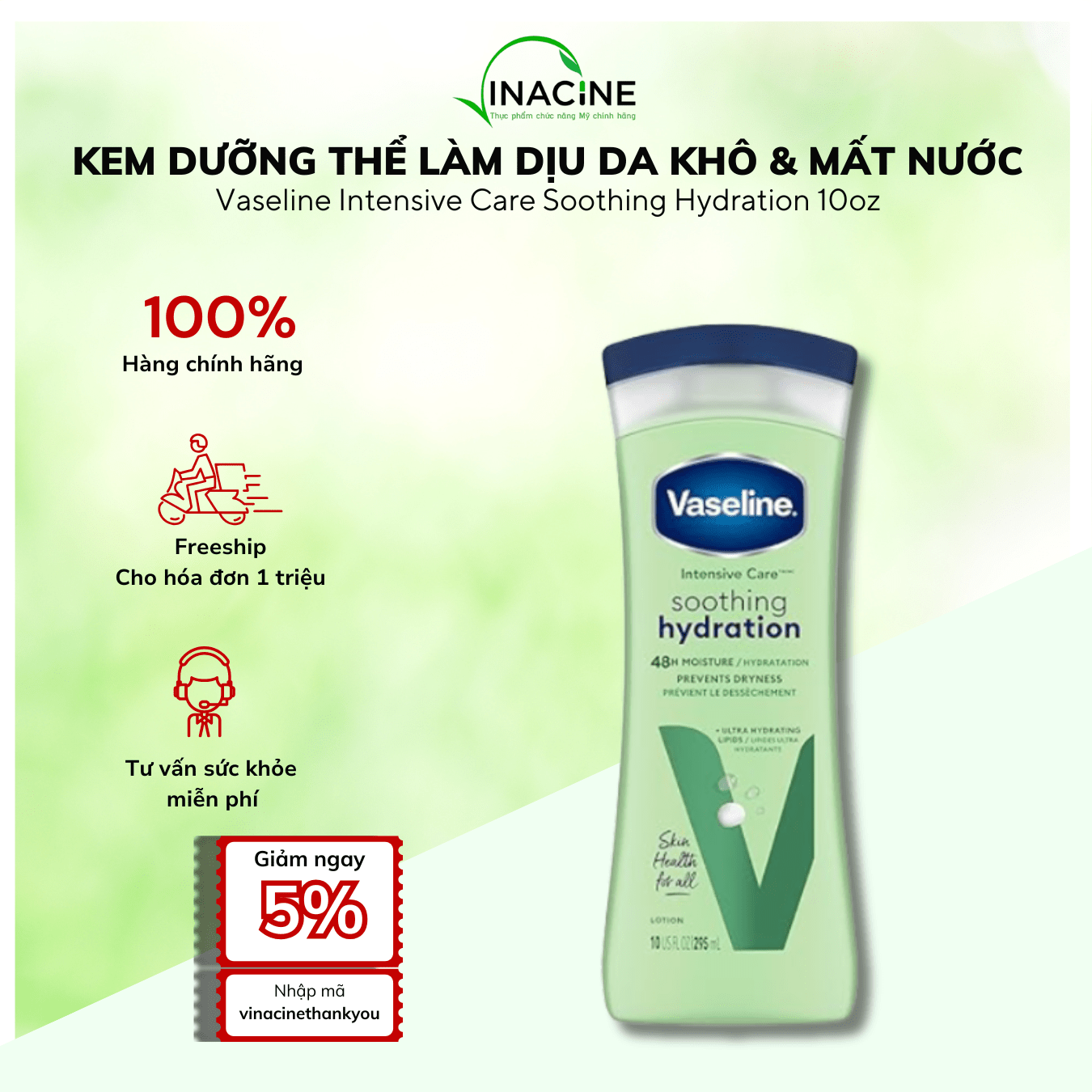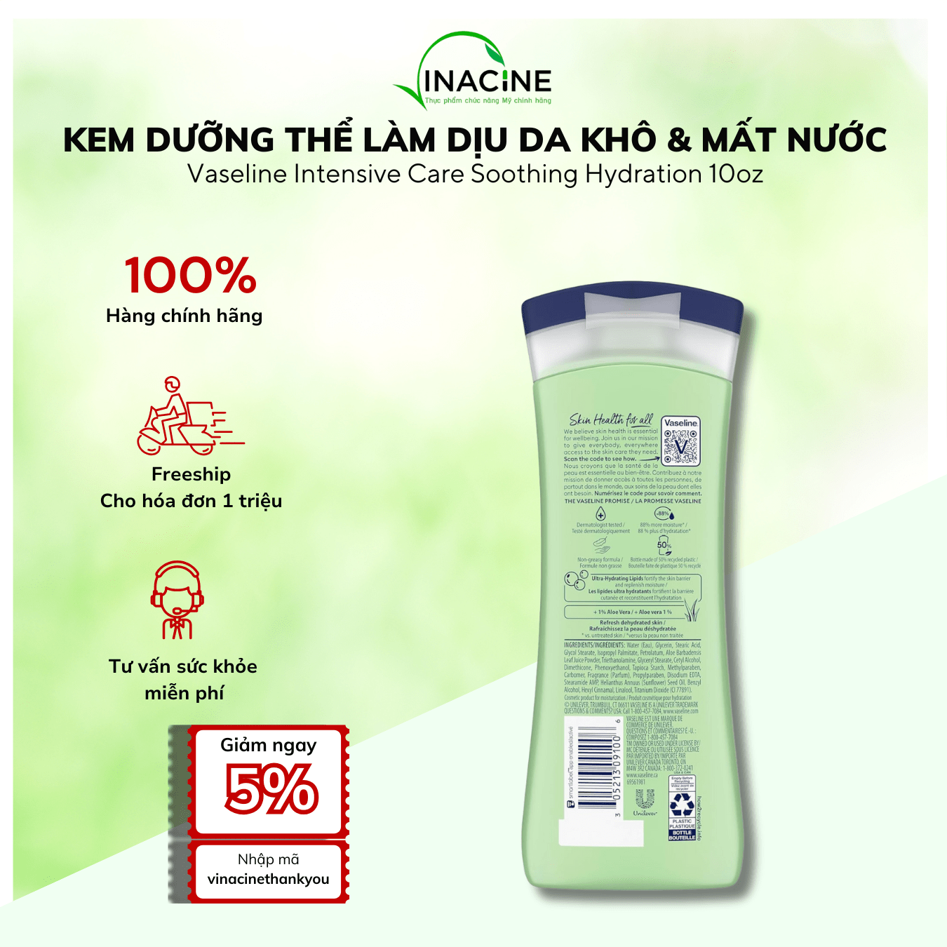 ToggleKem Dưỡng Thể Vaseline Intensive Care Soothing Hydration 10oz – Dưỡng Thể Nha Đam Cho Da Khô, Mất Nước
