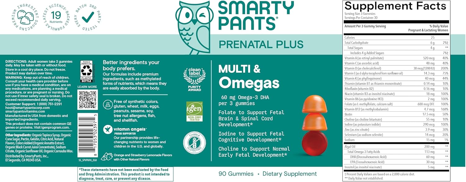 SmartyPants Prenatal Multivitamin Gummies – Kẹo Dẻo Bổ Sung Vitamin Cho Phụ Nữ Mang Thai, Omega-3 DHA & Axit Folic