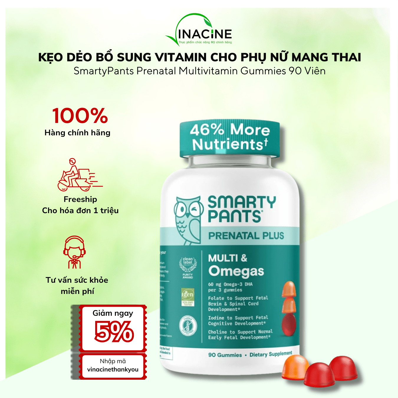 Kẹo Dẻo Bổ Sung Vitamin Cho Phụ Nữ Mang Thai SmartyPants Prenatal Multivitamin Gummies 90 Viên