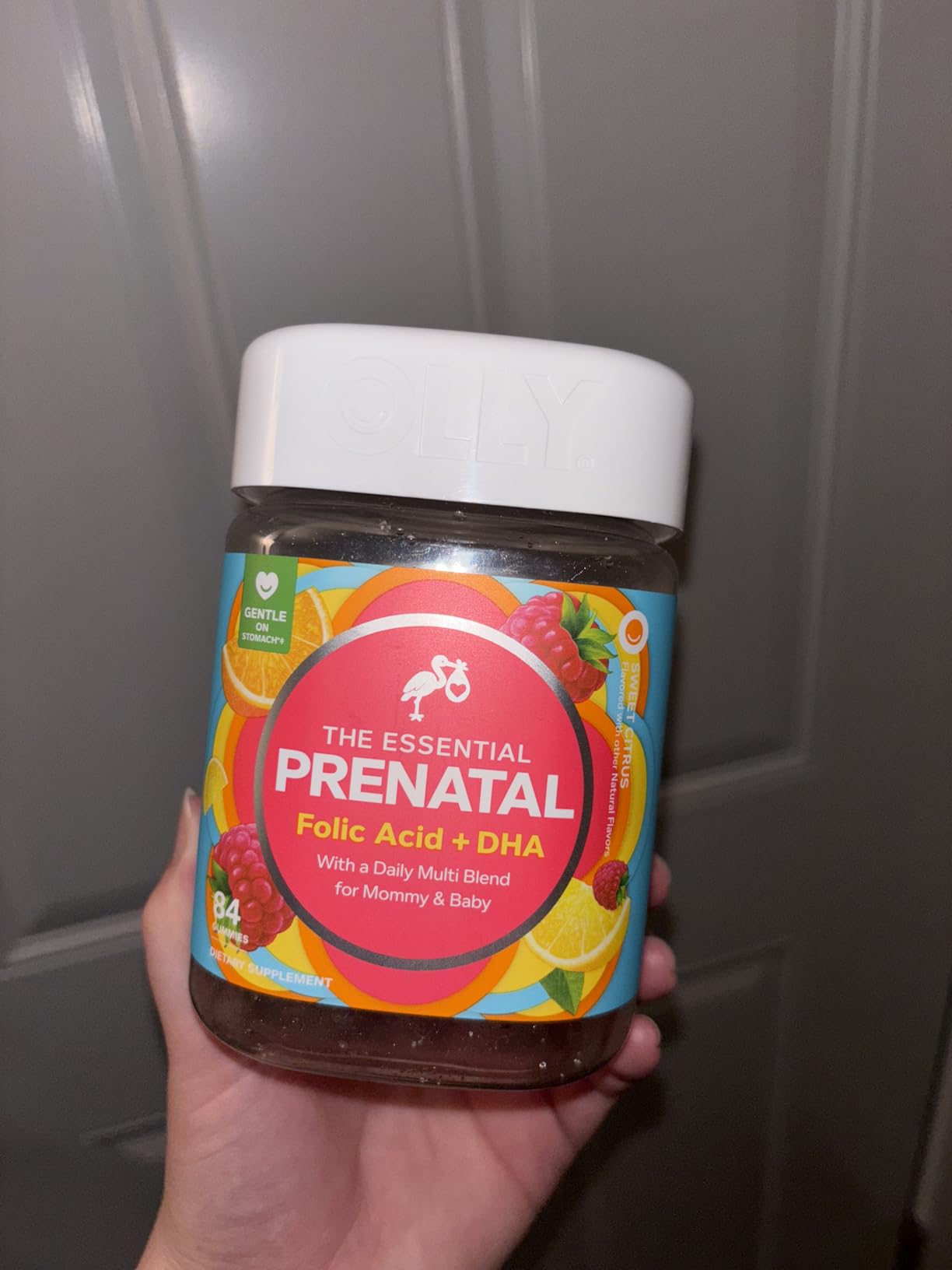 OLLY Prenatal Multivitamin Gummy là kẹo dẻo bổ sung dinh dưỡng dành cho phụ nữ mang thai và cho con bú. Với công thức chứa Folic Acid, DHA từ Omega-3 và Vitamin D, sản phẩm giúp hỗ trợ phát triển não bộ, thị giác của thai nhi, đồng thời tăng cường sức khỏe cho mẹ. Dạng kẹo dẻo mềm, vị cam mọng ngọt dịu, dễ sử dụng mỗi ngày.