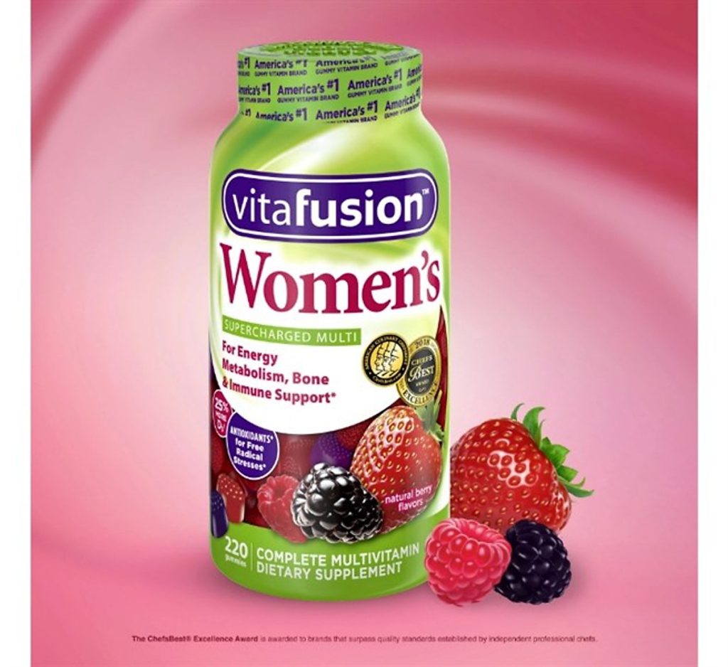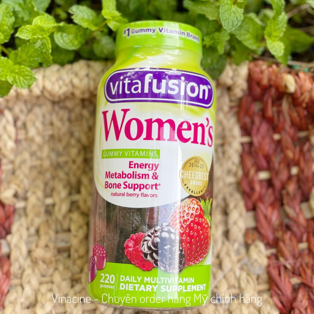 - Vitafusion Women’s Multivitamin hiện đang là một trong những sản phẩm được ưa chuộng hàng đầu tại châu Âu, đặc biệt là tại xứ cờ hoa. Tuy nó là thực phẩm hỗ trợ sức khỏe nhưng các chị em cứ yên tâm là nó không hề khó ăn mà ngược lại với kết cấu dạng kẹo dẻo cùng mùi thơm dịu nhẹ hoàn toàn rất dễ ăn mà không gây ra dị ứng hay khó chịu.