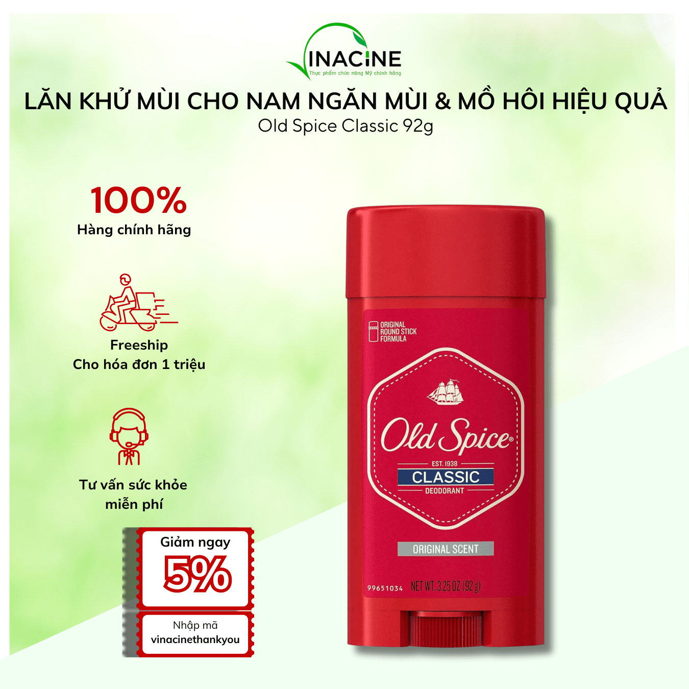 Lăn Khử Mùi Old Spice Classic Cho Nam – Hương Thơm Nam Tính, Khô Thoáng Suốt 24h, Ngăn Mùi & Mồ Hôi Hiệu Quả