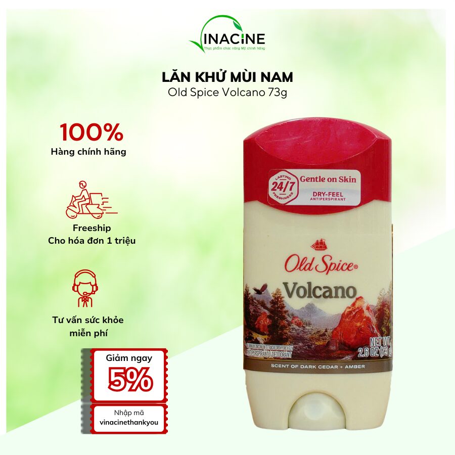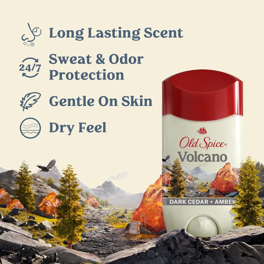 Lăn Khử Mùi & Ngăn Mồ Hôi Nam Old Spice Volcano with Charcoal là dòng Antiperspirant & Deodorant giúp kiểm soát mồ hôi và mùi cơ thể lên đến 48 giờ. Công thức chứa than hoạt tính (Charcoal) hỗ trợ hấp thụ mùi, kết hợp hương Volcano mạnh mẽ, nam tính, ấm trầm, mang lại cảm giác sạch sẽ, tự tin trong mọi hoạt động – từ làm việc, vận động đến môi trường nóng ẩm.