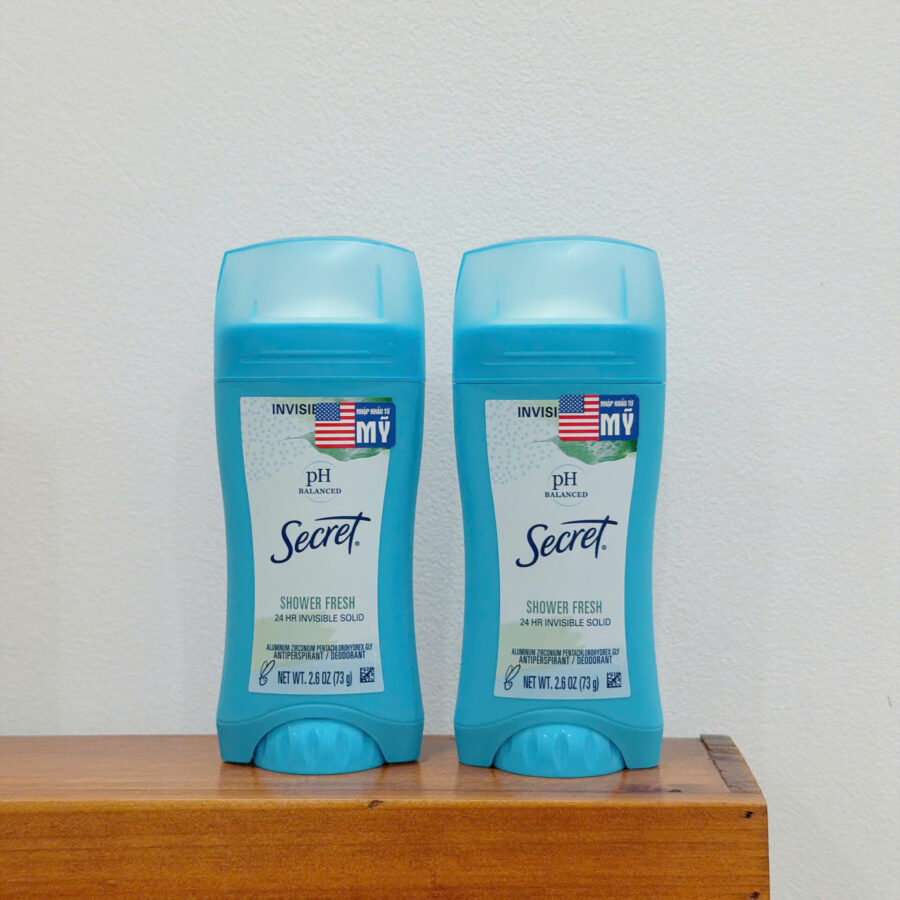 Secret là thương hiệu khử mùi nổi tiếng đến từ Mỹ, trực thuộc tập đoàn P&G, được hàng triệu phụ nữ tin dùng. Secret nổi bật với công nghệ pH Balanced, giúp bảo vệ vùng da dưới cánh tay, kiểm soát mùi mồ hôi hiệu quả mà vẫn dịu nhẹ cho da. Secret pH Balanced Shower Fresh Invisible Solid 73g là lăn khử mùi dạng sáp giúp ngăn mùi hiệu quả, giữ vùng da dưới cánh tay luôn khô thoáng và sạch sẽ. Hương Shower Fresh mang cảm giác tươi mát như vừa tắm xong, dễ chịu và không nồng gắt.