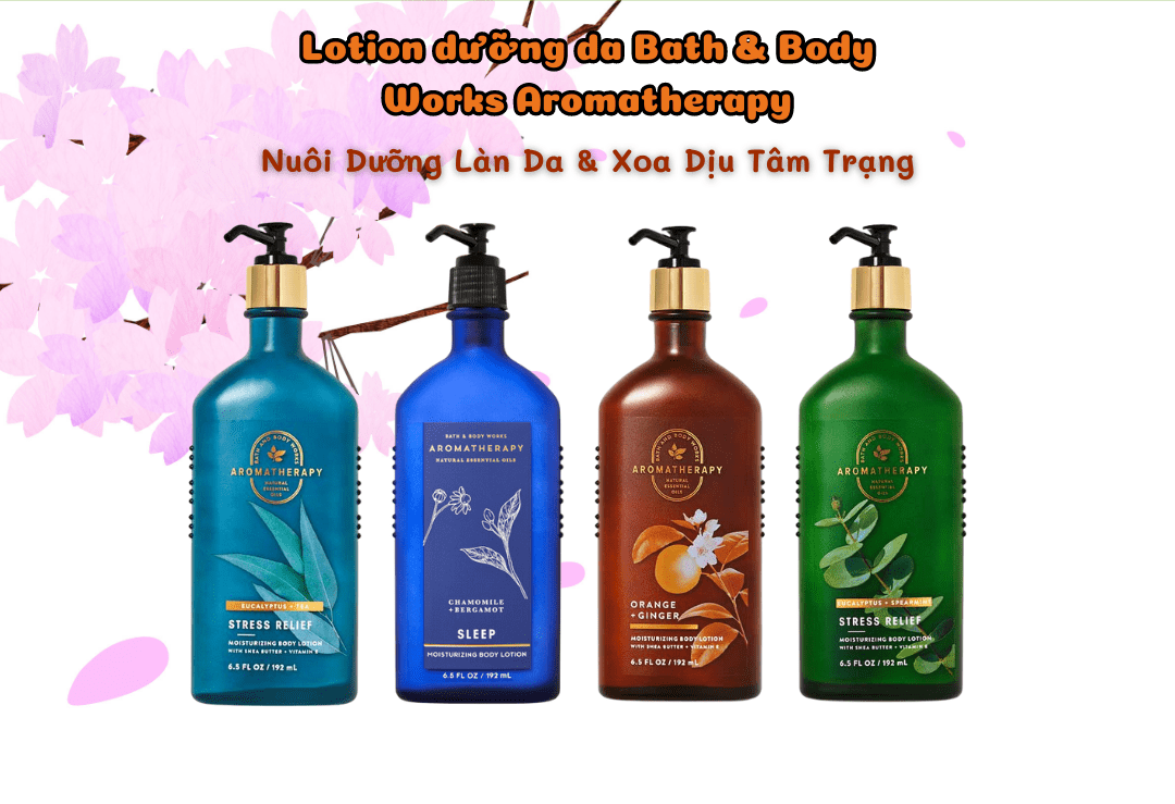 - Lotion Aromatherapy còn chứa các loại hương thơm khác nhau như Stress Relief, Sleep, Love và Energy giúp tạo một cảm giác thư giãn và sảng khoái.