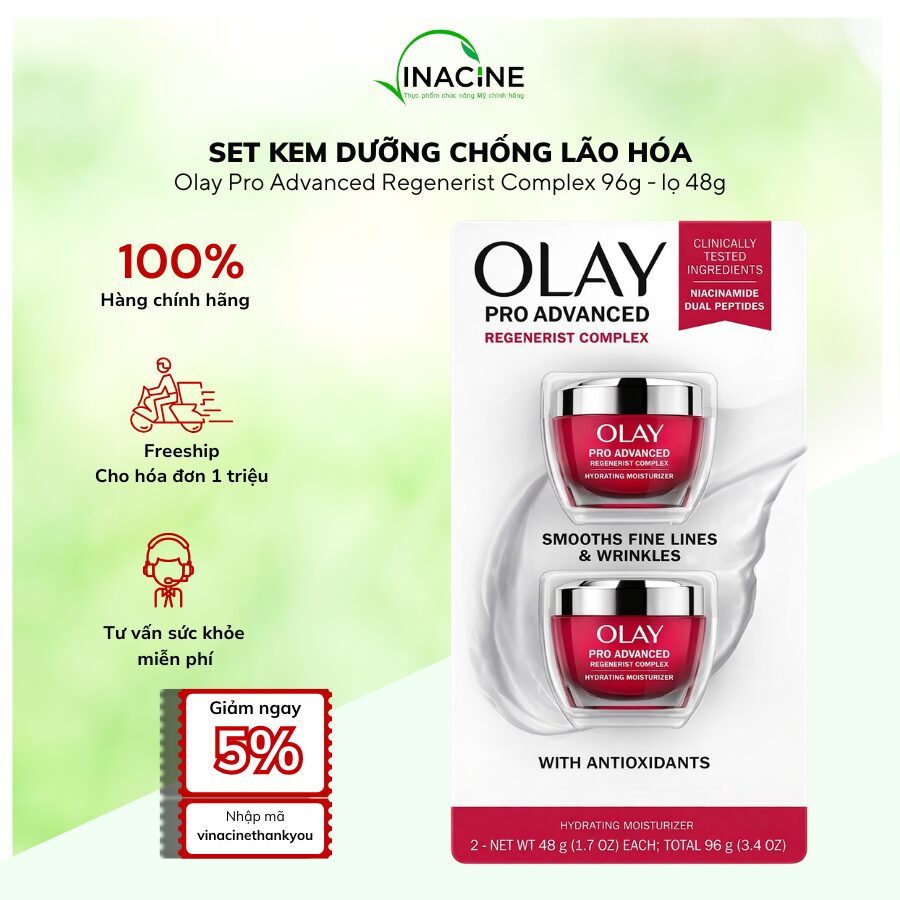 - Đội ngũ dược sĩ và chuyên viên tư vấn giàu kinh nghiệm của Vinacine.Us luôn sẵn sàng hỗ trợ bạn lựa chọn Olay Pro Advanced Regenerist Complex phù hợp nhất – đảm bảo an toàn, hiệu quả và tiết kiệm trong việc hỗ trợ chăm sóc da mặt, ngừa nếp nhăn mỗi ngày.