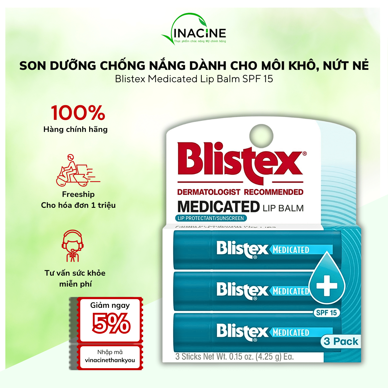- Không chứa: Hương liệu, chất bảo quản (paraben) và thuốc nhuộm, đảm bảo an toàn cho môi nhạy cảm nhất.