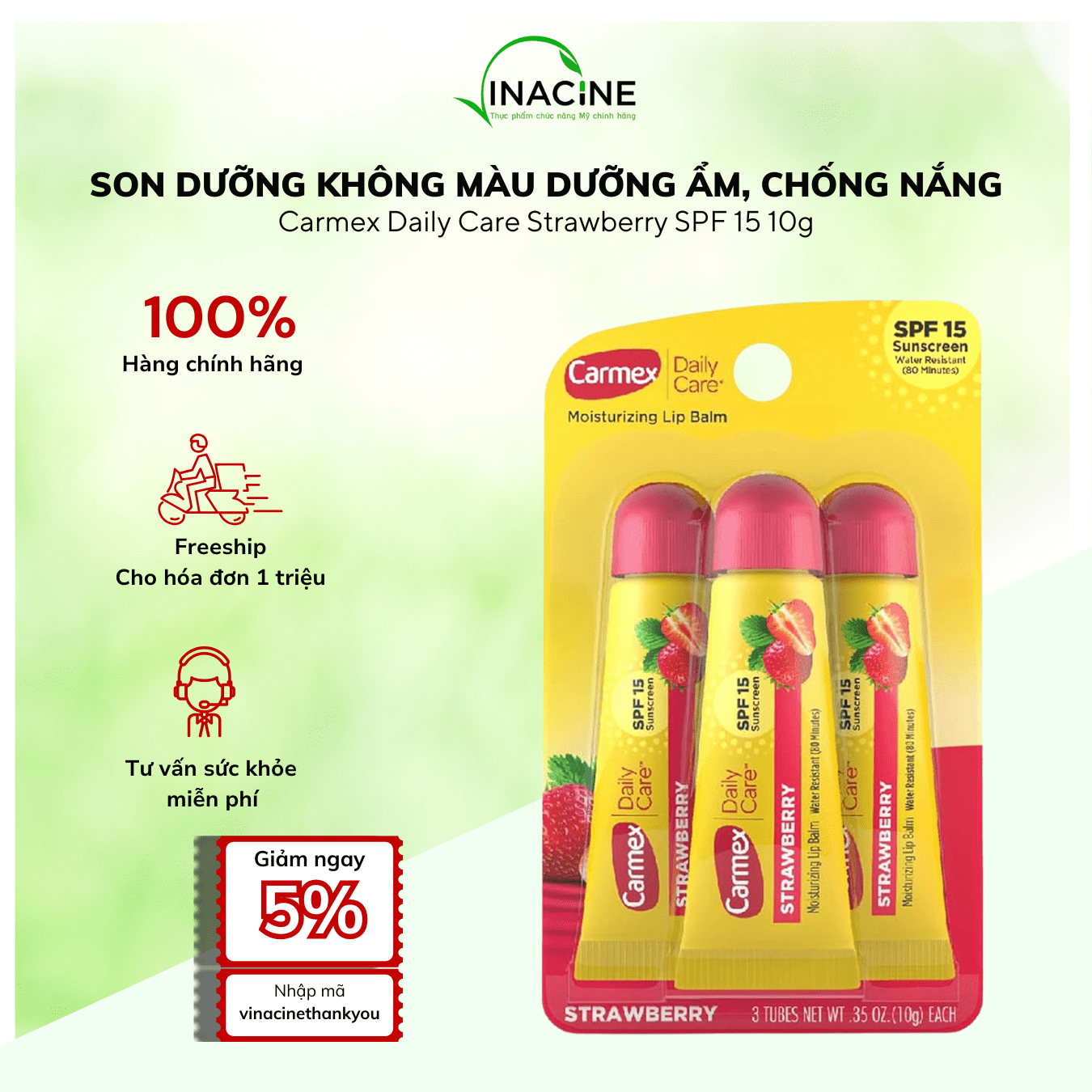 Son Dưỡng Môi Không Màu Chống Nắng spf 15 Carmex Daily Care Moisturizing Lip Balm 10g