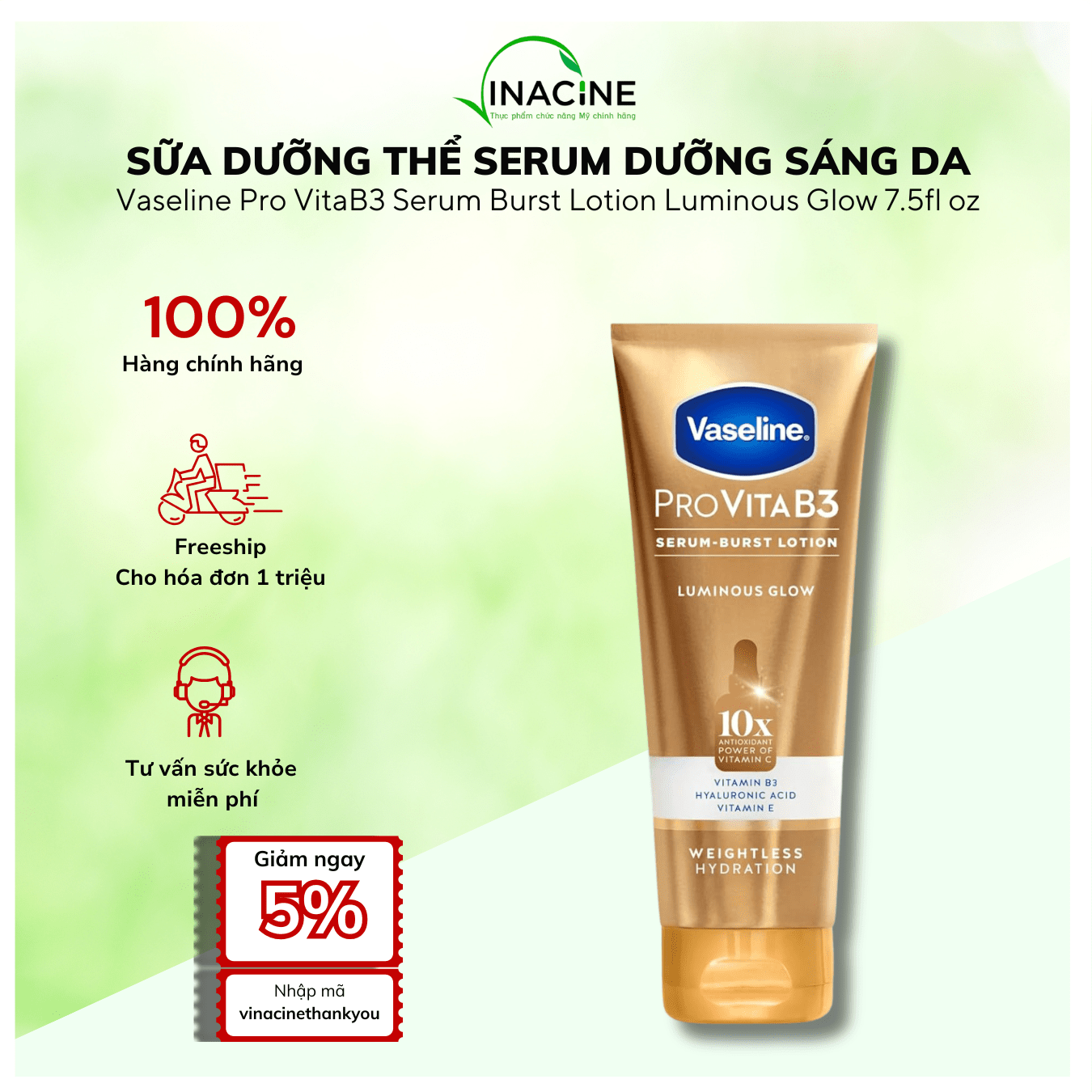 ToggleVaseline Pro VitaB3 Serum Burst Lotion Luminous Glow – Sữa dưỡng thể serum dưỡng sáng da, ẩm mượt, chống oxy hóa 10x