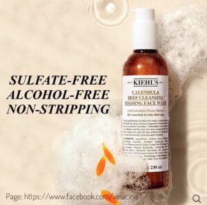 - Kiehl’s Calendula Deep Cleansing Foaming Face Wash – sữa rửa mặt dịu nhẹ, chiết xuất từ cúc kim chẩn thảo và glycerin thực vật có tác dụng làm sạch sâu, loại bỏ dầu thừa và lớp bụi bẩn trên da. Với bề dày lịch sử hơn 165 năm thành lập, Kiehl’s hiện nay đang từng bước trở thành một công ty phát triển toàn cầu, sản xuất ra nhiều sản phẩm dưỡng da, chăm sóc tóc được chiết xuất từ tự nhiên.
