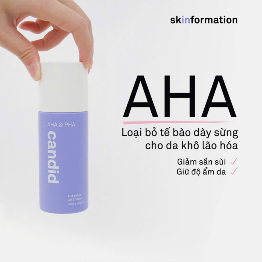 Candid là thương hiệu mỹ phẩm tập trung vào các giải pháp chăm sóc da khoa học, sử dụng các hoạt chất hiệu quả. Candid AHA & PHA Gel Exfoliant là sản phẩm tẩy tế bào chết hóa học đặc biệt, được thiết kế để giải quyết vấn đề da khô ráp, thiếu ẩm và xỉn màu. Khác với BHA (tan trong dầu), sự kết hợp của AHA và PHA giúp nhẹ nhàng loại bỏ tế bào chết trên bề mặt da, đồng thời cung cấp độ ẩm, giúp da trở nên mềm mại và rạng rỡ hơn.