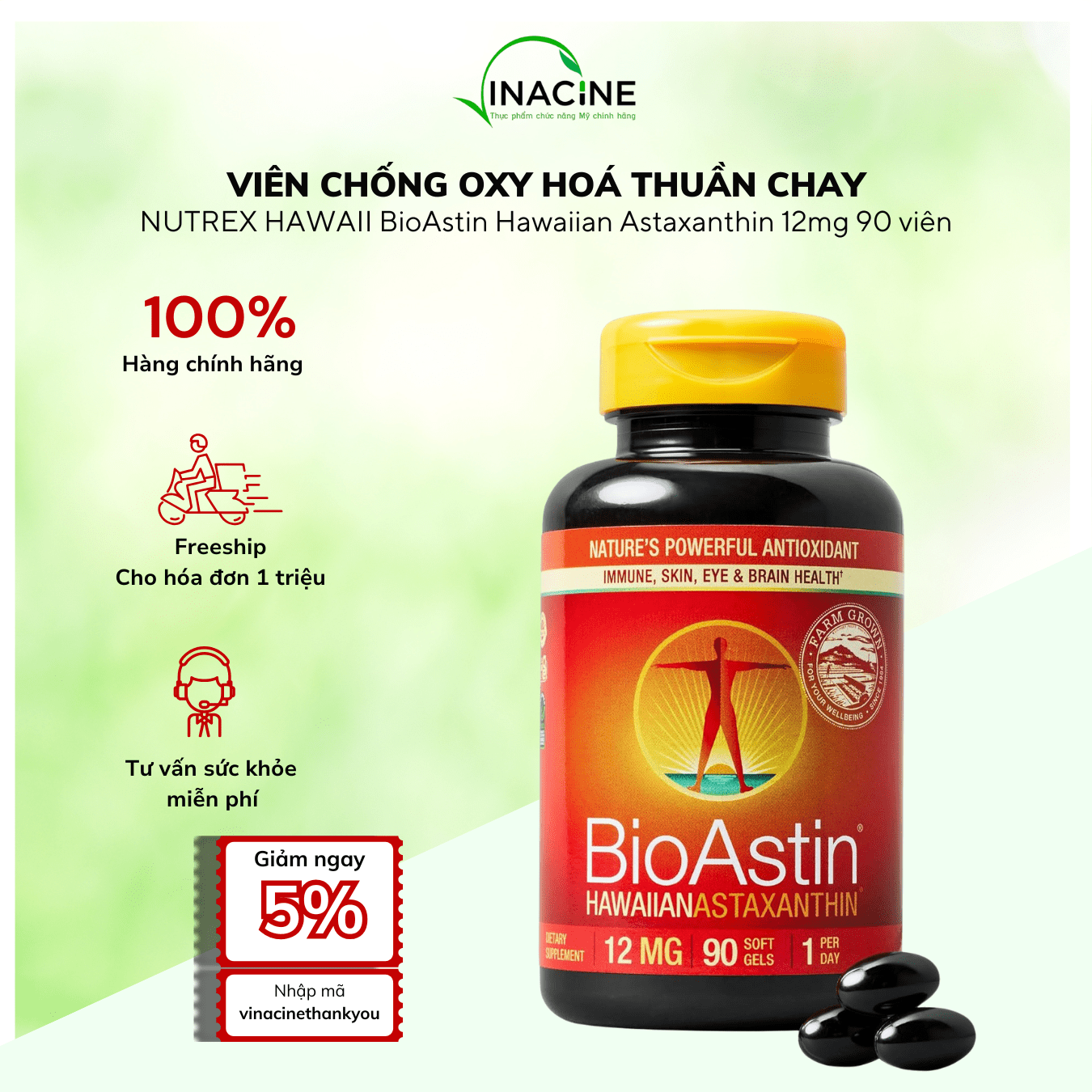 Viên Chống Oxy Hoá Thuần Chay NUTREX HAWAII BioAstin Hawaiian Astaxanthin 12mg 90 Viên