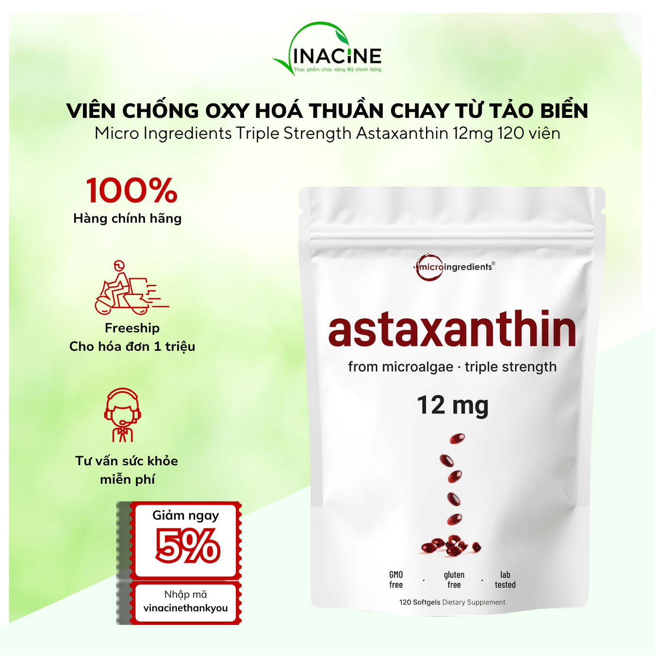Micro Ingredients Astaxanthin – Viên Uống Chống Oxy Hóa Từ Tảo Biển, Tốt Cho Da, Mắt, Tim Mạch, Thuần Chay