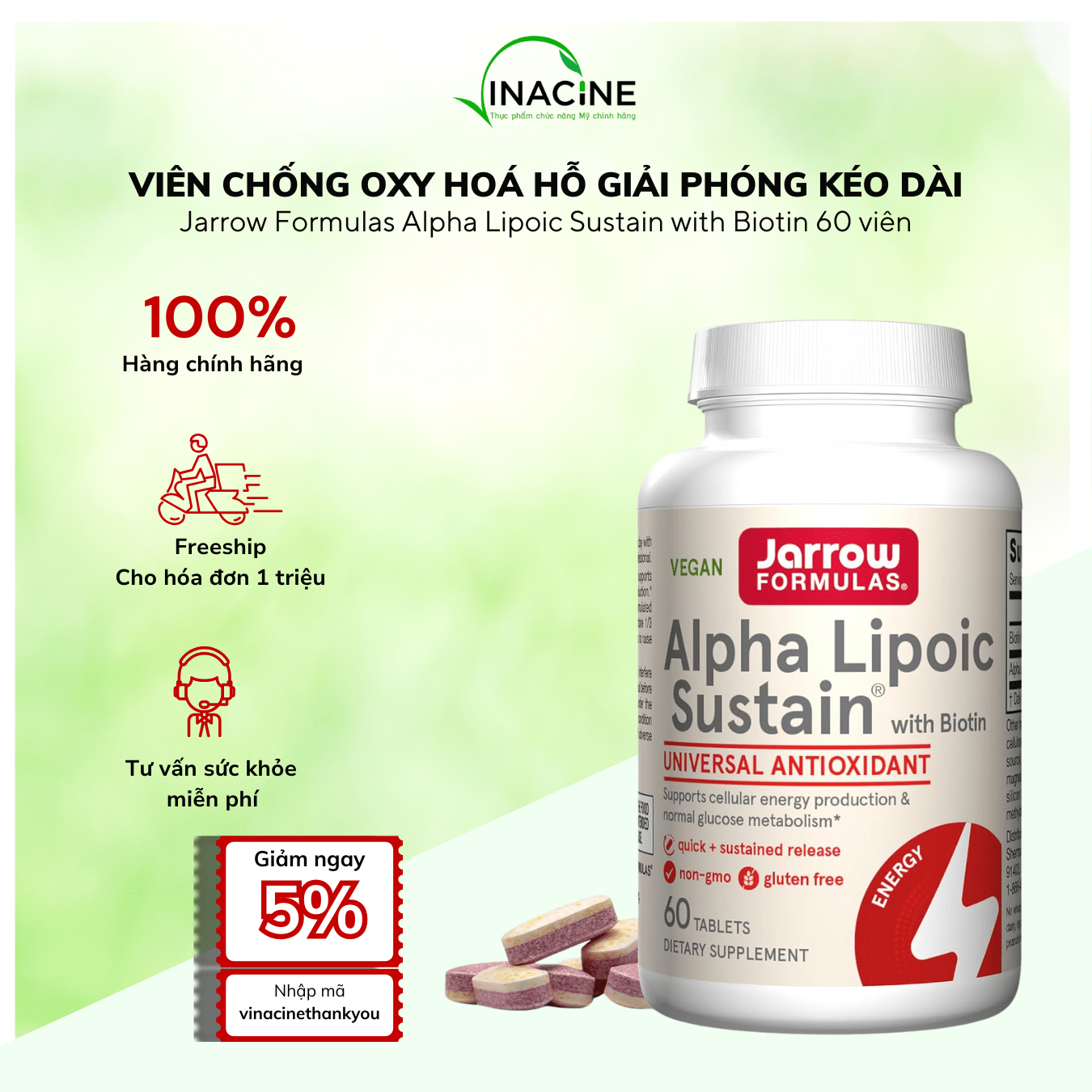 Viên Uống Chống Oxy Hóa Jarrow Formulas Alpha Lipoic Sustain 300mg With Biotin 60 Viên