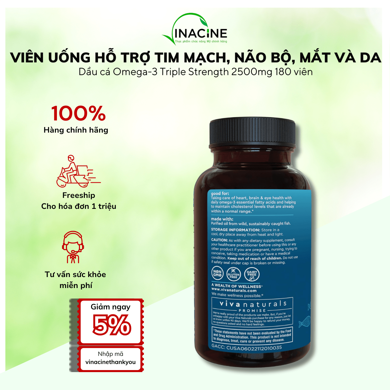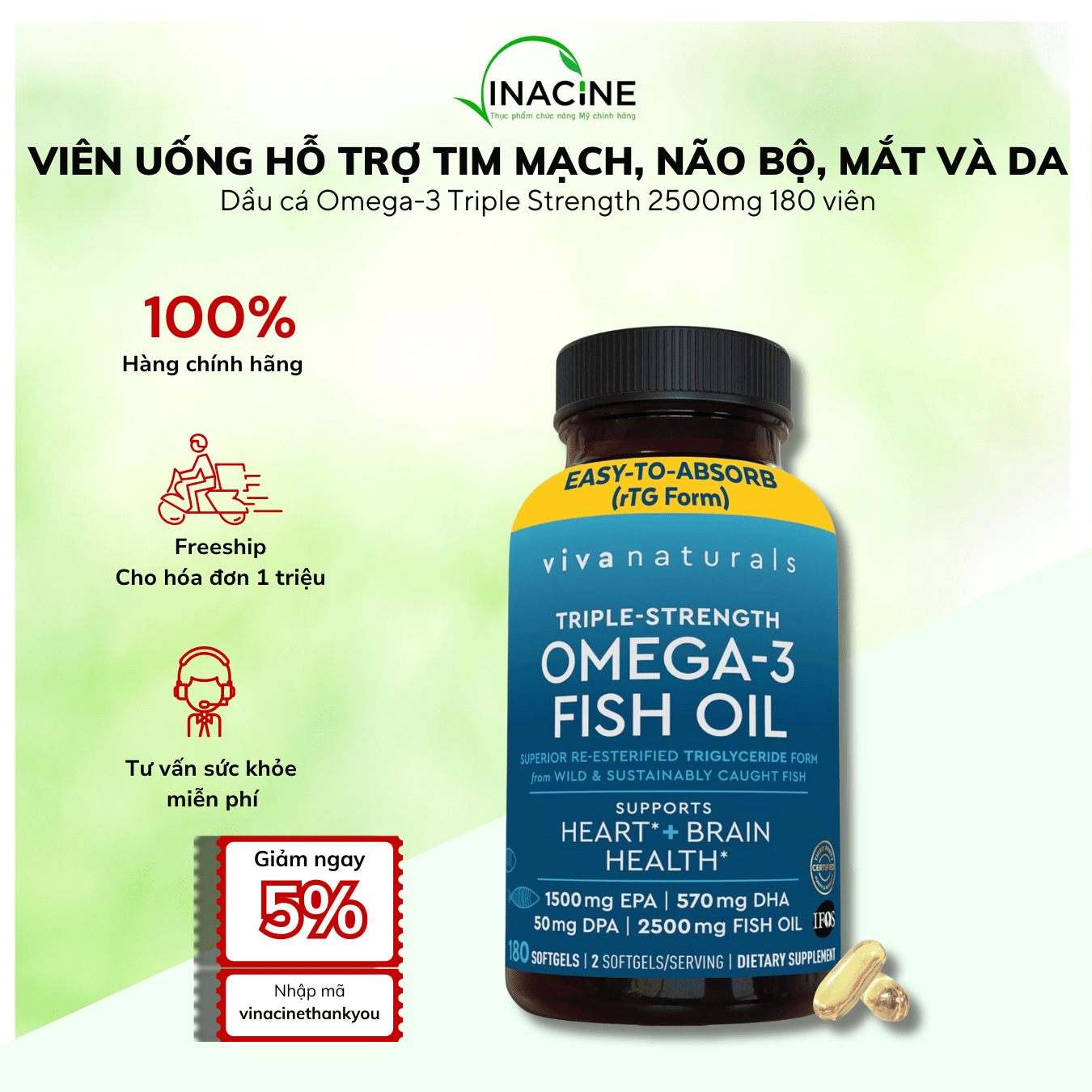 Viên Uống Dầu Cá Omega-3 Triple Strength 2500mg Hỗ Trợ Tim Mạch, Não Bộ, Mắt Và Da 180 Viên