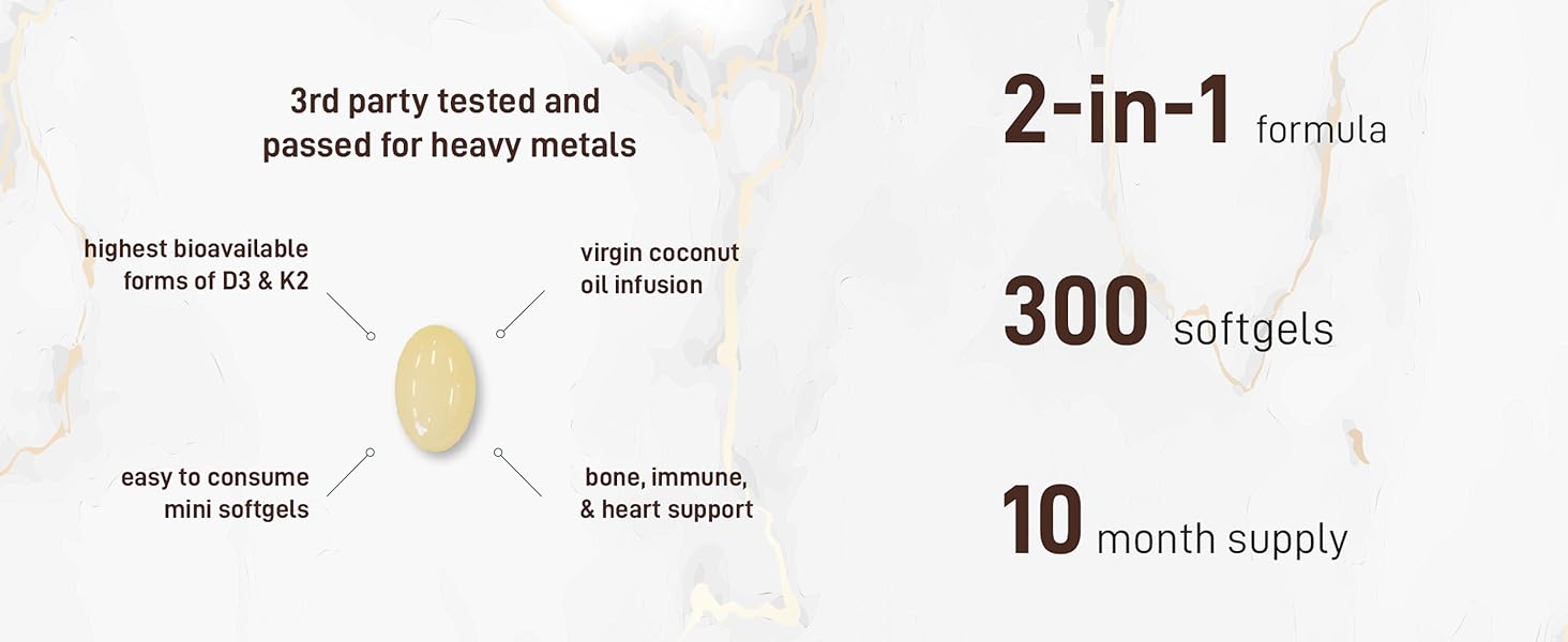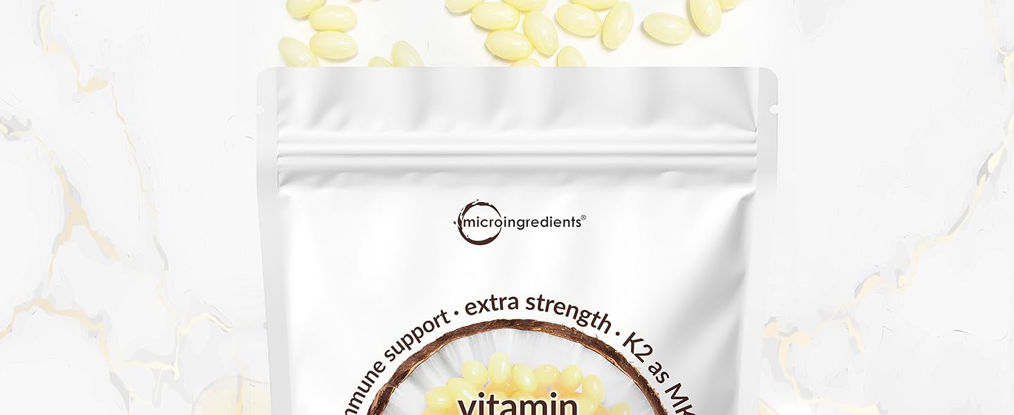 Micro Ingredients Vitamin D3 10,000 IU + K2 MK-7 200 mcg – Viên Uống Bổ Sung D3 K2 Hỗ Trợ Xương, Tim Mạch & Miễn Dịch