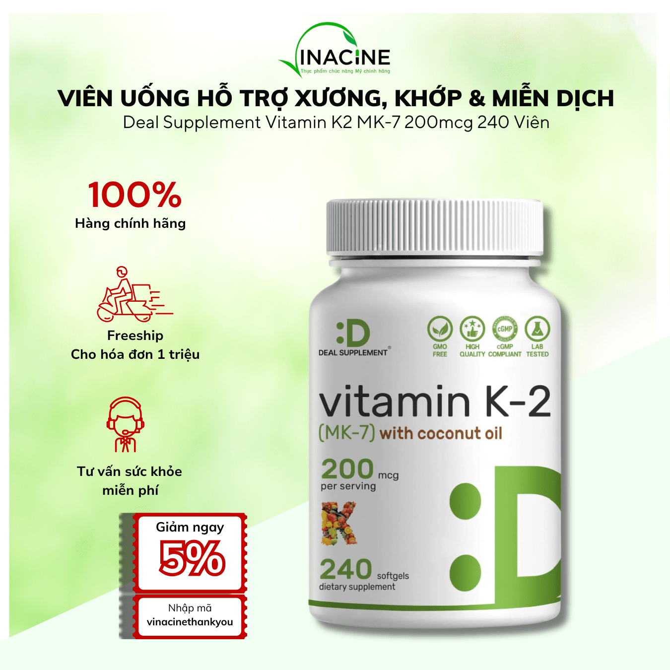 Viên Uống Hỗ Trợ Xương, Khớp & Miễn Dịch Deal Supplement Vitamin K2 MK-7 200mcg 240 Viên