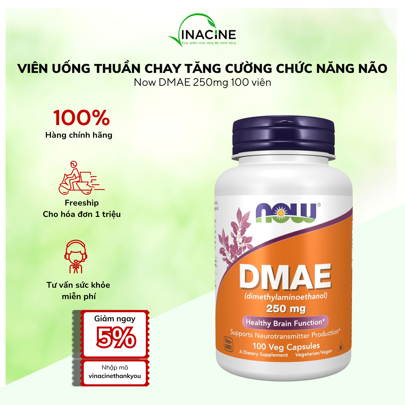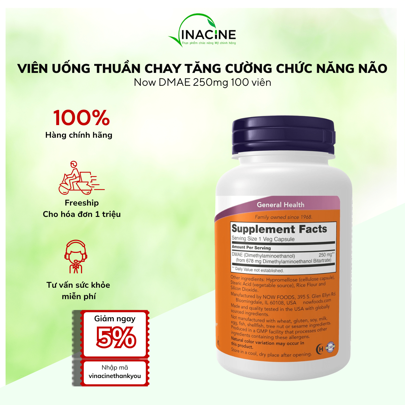 Viên uống thuần chay tăng cường chức năng não Now DMAE 250mg 100 viên