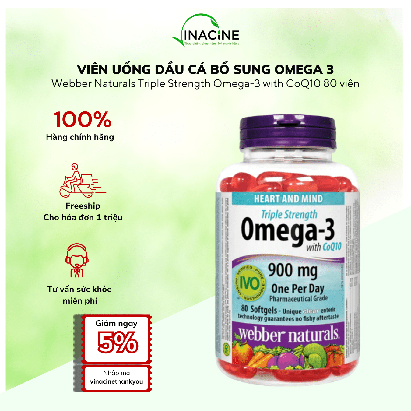 Thương Hiệu: Webber NaturalsViên Uống Dầu Cá Bổ Sung Omega 3 Webber Naturals Triple Strength Omega-3 with CoQ10 80 Viên