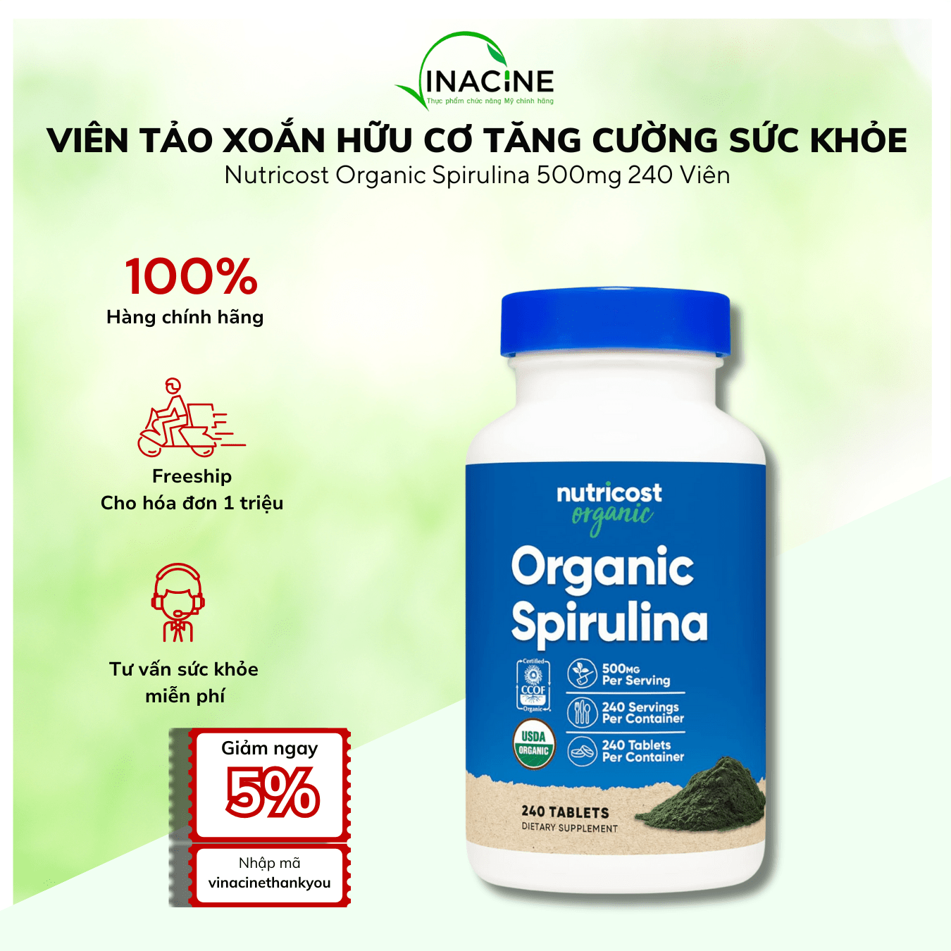 Thương Hiệu: NutricostViên Uống Bổ Sung Tảo Hữu Cơ Nutricost Chlorella 500mg 240 viên