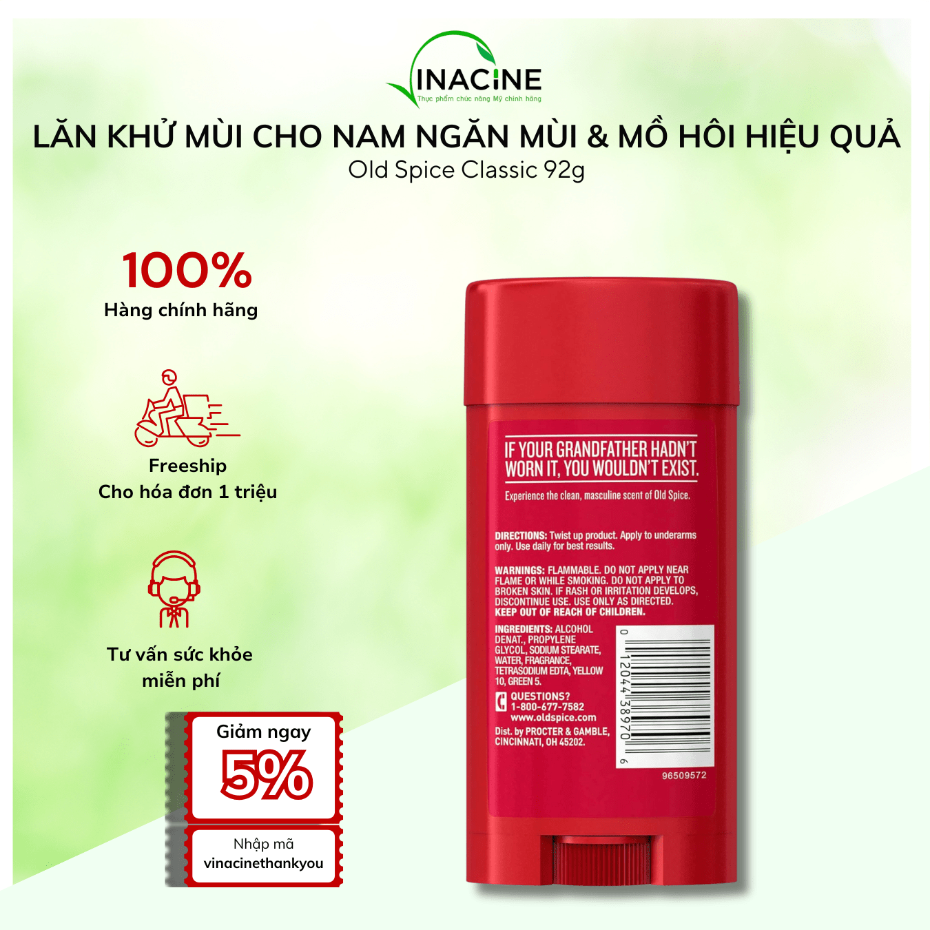 Thương Hiệu: Old SpiceLăn Khử Mùi Cho Nam Ngăn Mùi & Mồ Hôi Hiệu Quả Old Spice Classic 92g 165,000 ₫