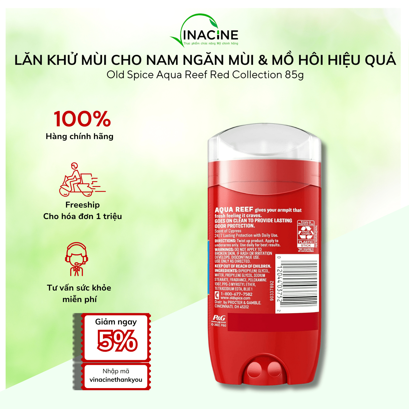 Thương Hiệu: Old SpiceLăn Sáp Khử Mùi Old Spice Aqua Reef Red Collection Hương Thơm Tươi Mát 85g 165,000 ₫