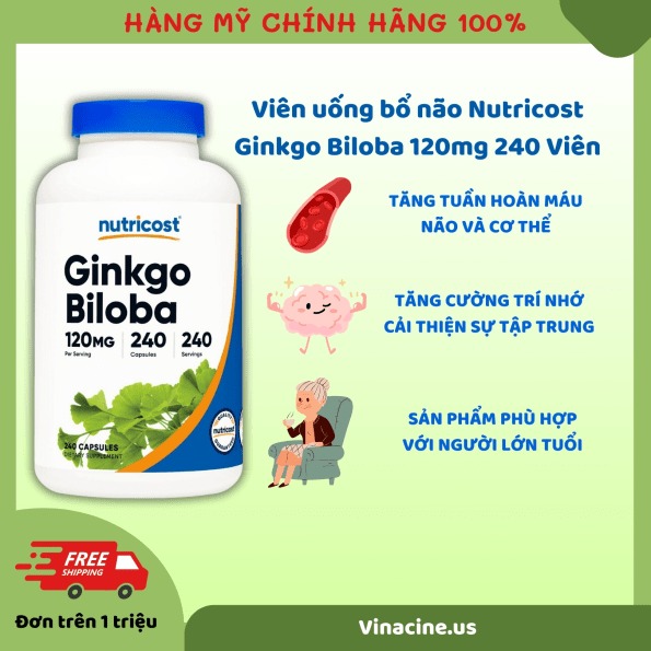 Viên uống bổ não Nutricost Ginkgo Biloba 120mg 240 Viên – Vinacine