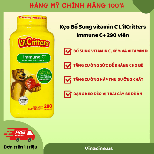 Kẹo bổ sung vitamin C L’ilCritters Immune C+ 290 viên – Vinacine