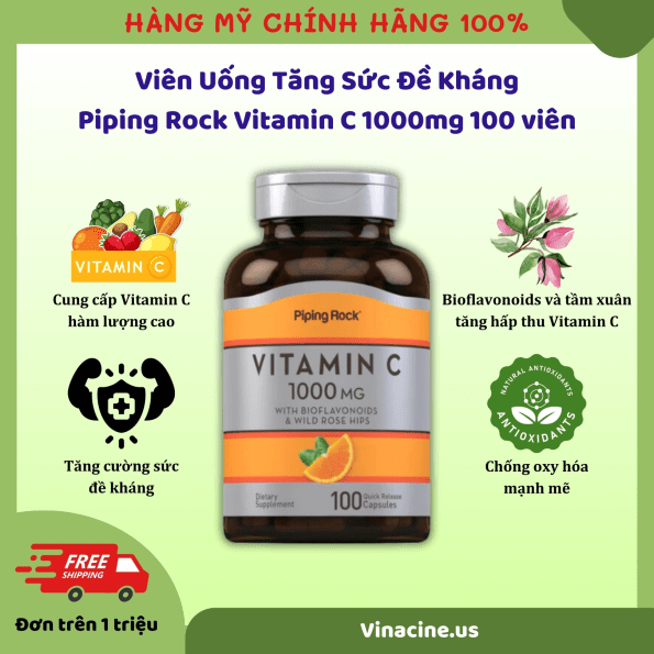 Viên Uống Tăng Sức Đề Kháng Piping Rock Vitamin C 1000mg – Vinacine