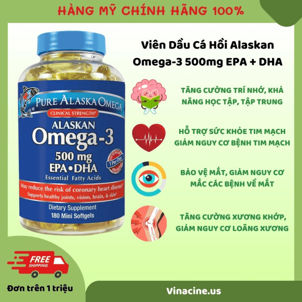 Viên Dầu Cá Hồi Alaskan Omega-3 500mg EPA + DHA 180 viên – Vinacine
