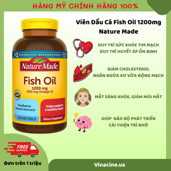 Viên uống bổ mắt NatureMade Omega 3 Fish Oil 200 viên – Vinacine